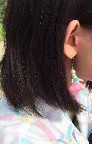 頭パールのせピアス(ピンクスカート)